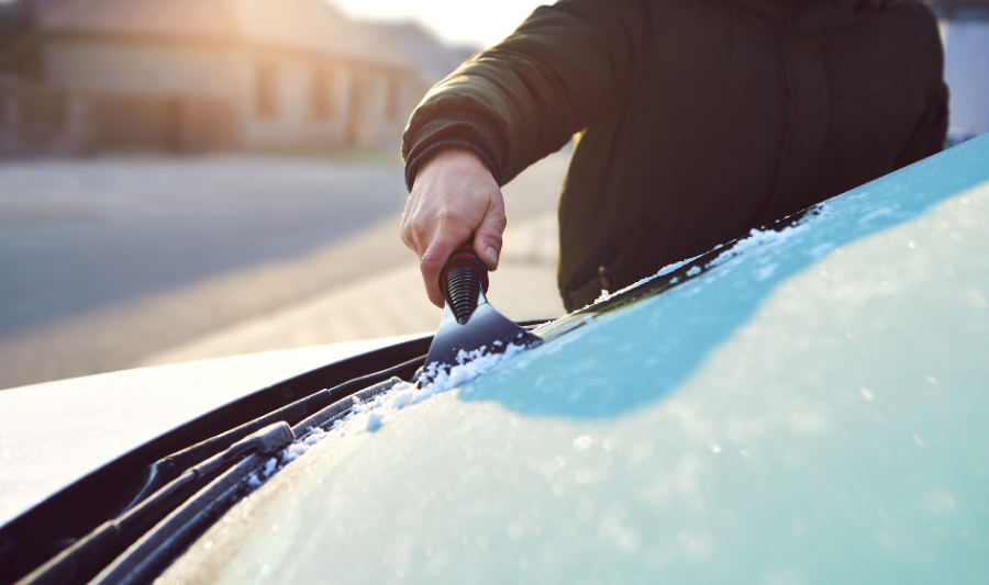 • Ice scraper & de-icer (legal requirement to have windows clear).